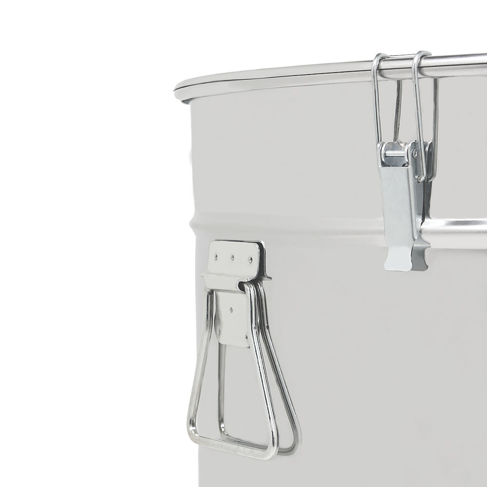 Wytrzymały i higieniczny odstojnik wykonany ze stali nierdzewnej AISI 304. Idealny do klarowania i przechowywania miodu. Wyposażony w uchwyty do przenoszenia, klamry zabezpieczające pokrywę oraz precyzyjny zawór ze stali nierdzewnej. Niezawodne rozwiązanie dla pszczelarzy ceniących trwałość i wygodę.