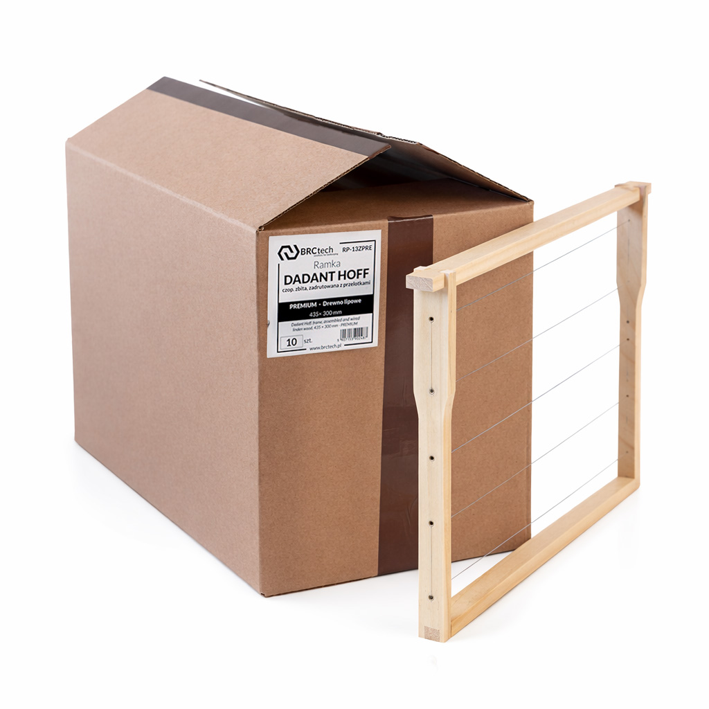 Ramka Dadant czop. Hoff. komplet 10szt. zbita, zadrutowana z przelotkami – PREMIUM – BRCtech