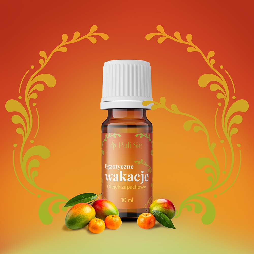 Przenieś się na rajską plażę dzięki olejkowi zapachowemu Egzotyczne Wakacje. To energetyczna i orzeźwiająca kompozycja soczystych owoców, egzotycznych kwiatów i nut kokosowych, która wprowadzi do Twojego domu klimat lata i relaksu.
